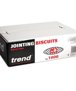 Trend biscuits are made of die cut beech. Beechwood biscuits which expand when in contact with a woodworking adhesive such as PVA glue. They are ideal for strong, fast, and accurate jointing of hard and soft woods, plywood and composition board. Compared to doweling, biscuit jointing is faster and more precise. Size=47.5 mm x 15.5 mm x 4 mm For board thickness=8 mm – 12 mm. Includes 1000 x No.0 Biscuits.
